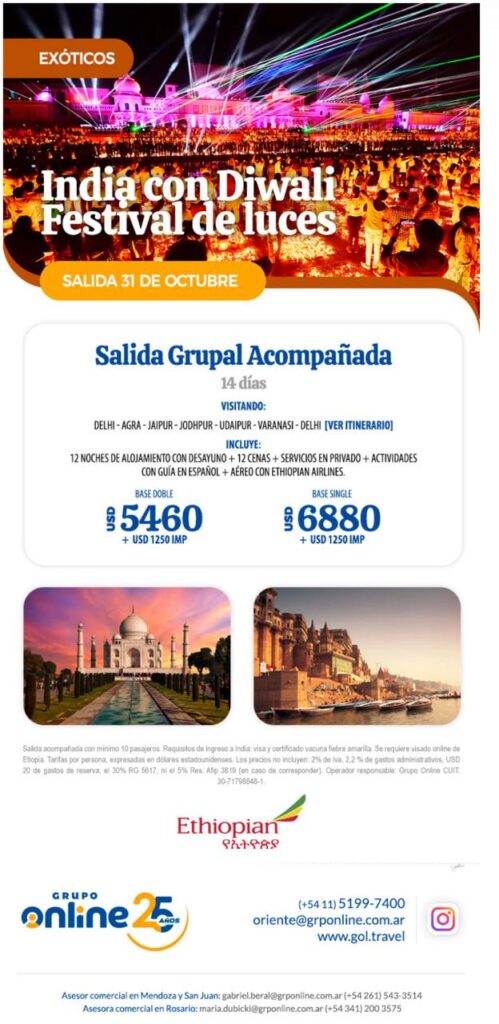 Descubrí la esencia de India en un recorrido fascinante que combina historia, espiritualidad y cultura, con el valor agregado de vivir el Diwali, una de las festividades más importantes del país.